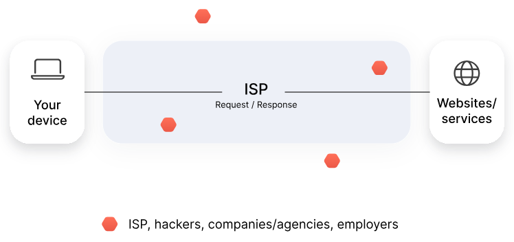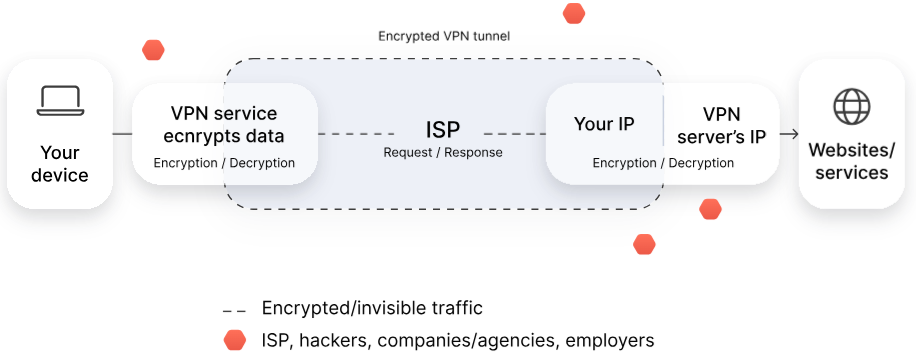 A VPN reroutes your traffic through a remote MeteorVPN server, encrypting it in the process, and protects it from snoopers. It also changes your IP and virtual location — your real one remains private, and you get a new IP that belongs to the MeteorVPN server you’re connected to. This ensures extra security and significantly increases your privacy online — no one knows what city or country you’re browsing from.
