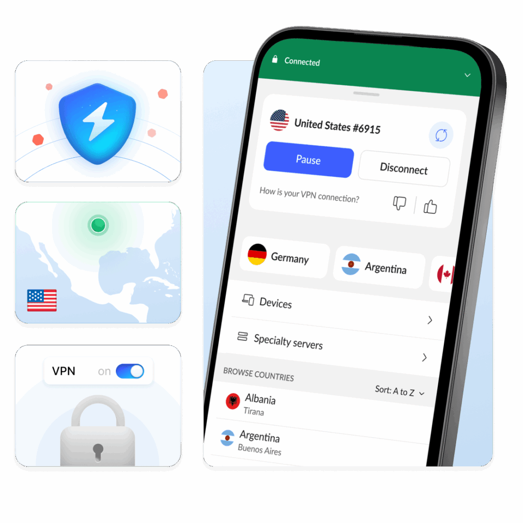 A VPN shields you from cyber threats, like man-in-the-middle attacks, packet sniffing, and dangerous Wi-Fi networks.